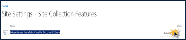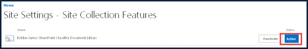 Spot the feature “Boldon James SharePoint Classifier Document Library”.