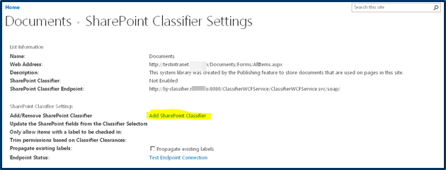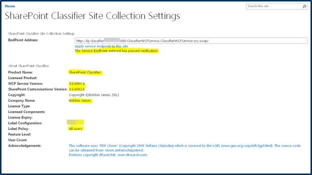 Configure SharePoint Site(s) to avail Boldon James Classifier Service
