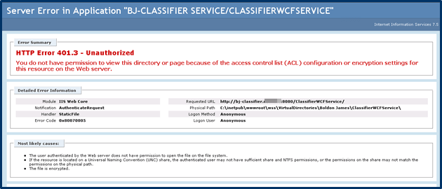 If it fails, follow the instructions described in “Classifier Web Site Issues and Solutions”.