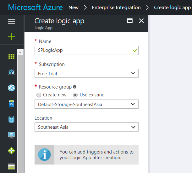 Provide the necessary inputs. Currently, logic app is available as free subscription.