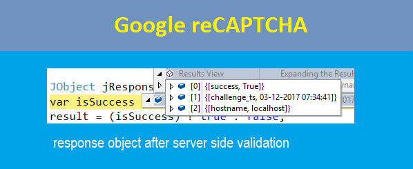 In this article, we learned what Google reCAPTCHA is, how to register our site for reCAPTHCA, how to integrate reCAPTCHA widget with the web page, how to validate reCAPTCHA challenges on the client side as well as server side in an ASP.NET application.