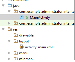 For this, create a new project IntentExampleApp. By default, MainActivity.java class is added in the project.