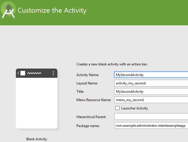 Add the second activity called MySecondActivity by right clicking on Java->New->Activity->Blank Activity.