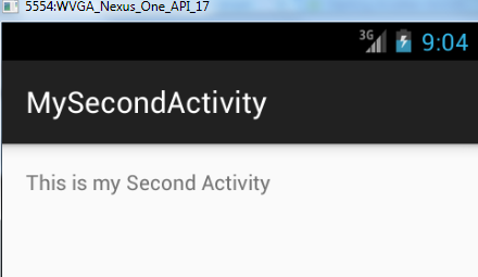 When the user clicks the button, the method showSecondActivity is called. In this method, an object of Intent is created and this is a type of an Explicit Intent. This Intent provides the external class to be invoked.The startActivity() method invokes another activity only. It does not return a result to the current activity.