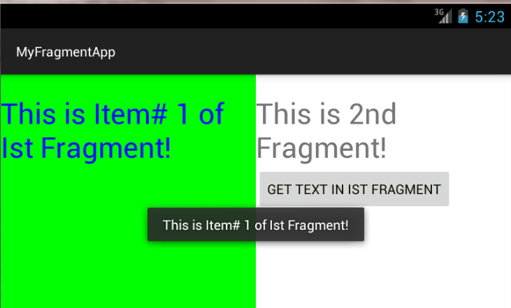 In the second fragment on the right, click the button. You will see the Toast class displaying the text