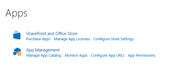 This section is divided into "SharePoint" and "Office Store" configurations.