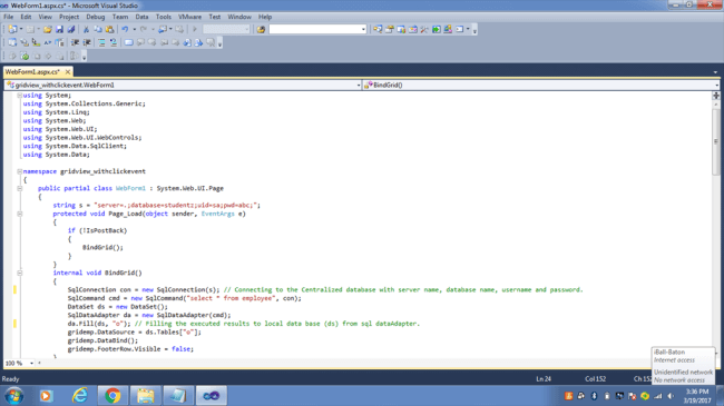- In this step we need to create a local database by creating its object. Before creating any object, we need to import the namespace of Data Set, so that we can use all its classes, methods, properties etc.