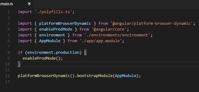 After completion of DOM reading by the Browser, first the Main.ts file is loaded. In main.ts file, first we export the “app.module” file by the class name (AppModule), which we define in app.module and in the next step, call the bootstrapModule() function and pass the name of AppModule, and bootstrap the AppModule.
