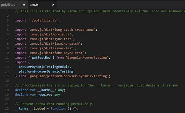 This file contains the code related to unit testing. This file loads the karma to start the unit testing.