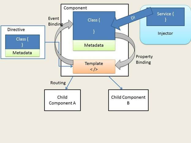 Angular 2 is not only the next or advanced version of Angular 1, it is fully redesigned and rewritten. Thus, the architecture of Angular 2 is completely different from Angular 1. Let’s understand the architecture of Angular 2.0