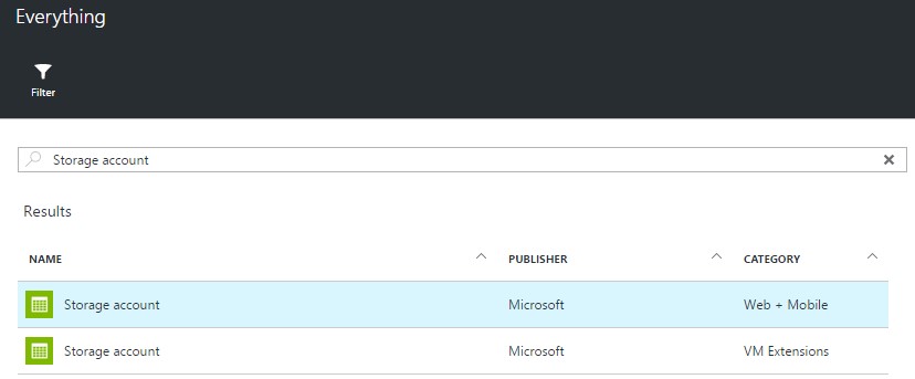 Search for storage account in filter box and click on storage account option to create a new storage account.