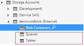 Note that storage explored is showing queues and tables as available offerings but it seems there is some issue with storage explorer since it is not an up to date build considering latest release of cold blob storage service so you can ignore it, if you want you can try to create queues and tables in it and it throws an exception which is expected.