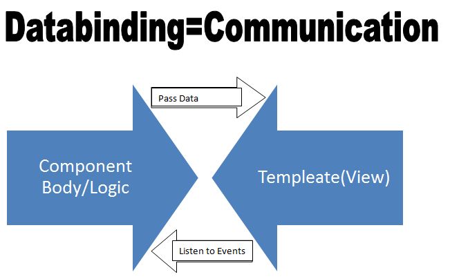 Data binding means communication. It means that the component body /logic and the typescript code interact with the component template (View), and also listen to the events.