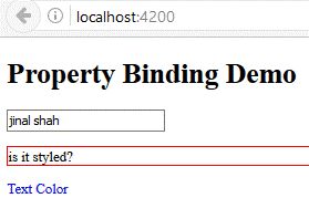 In Angular 2, we can access the html element property directly. To achieve property binding, we can simply use [].
