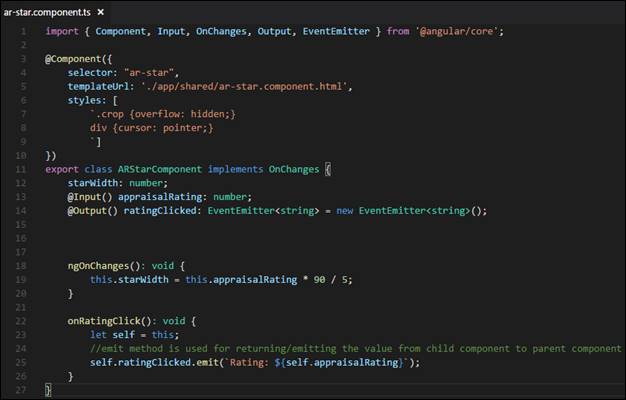 - <ar-star [appraisalRating]="emp.appraisalRating" (ratingClicked)="ratingClickedHandler($event)"></ar-star>