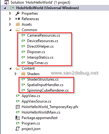 Now, you can see the HoloHelloWorld project structure as in the following screen shot.