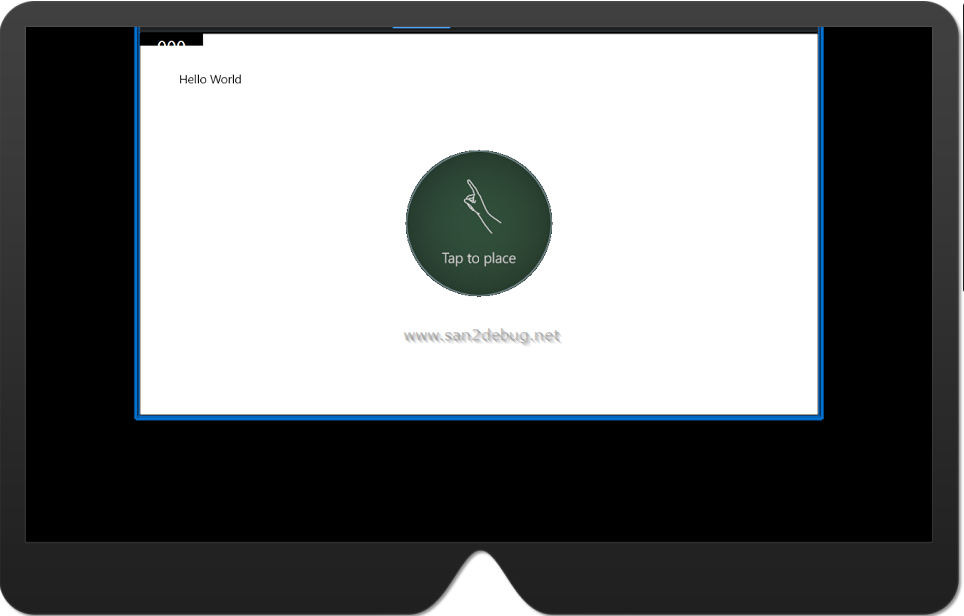 Now, if you can run the UWP Hello World Apps with the HoloLens Emulators, you can see how an app looks, as shown below: