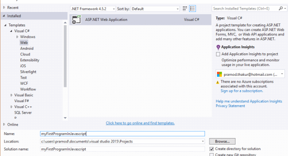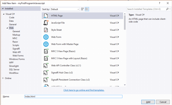 Before going to datatypes in JavaScript, I am just writing a program saying "Hello world". I am using Visual Studio. If you don't have VS, you can find it here. Yon can use any editor which you want to use; you can even use Notepad as well.