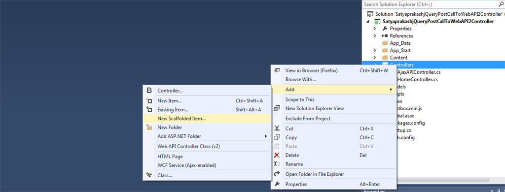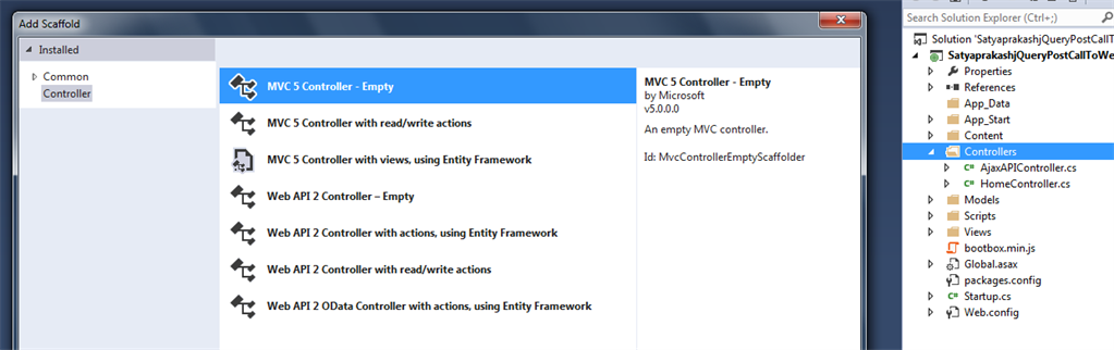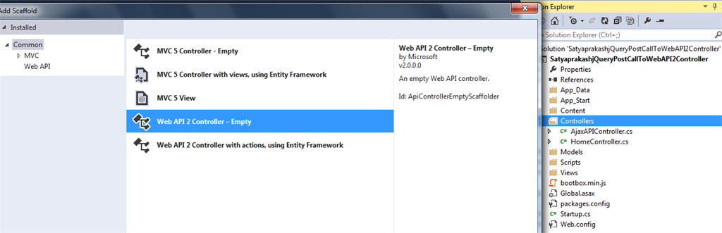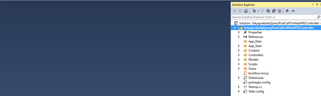 First, create an MVC 4.5 application named "SatyaprakashjQueryPostCallToWebAPI2Controller".
