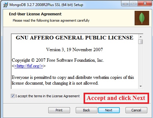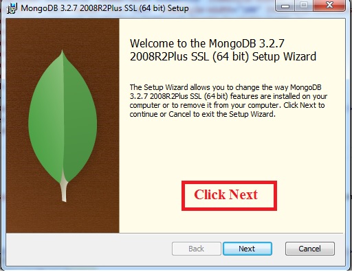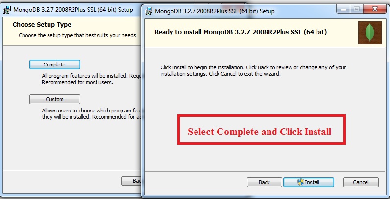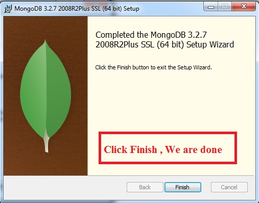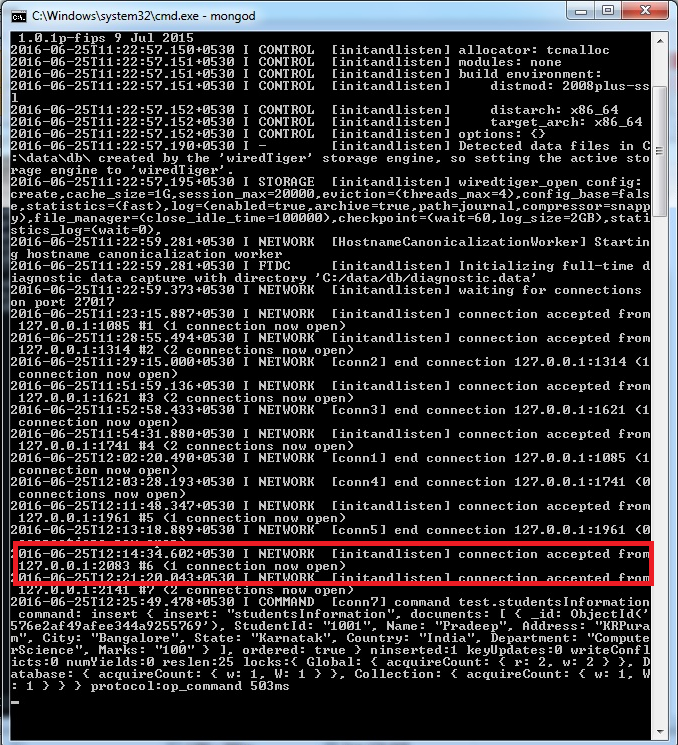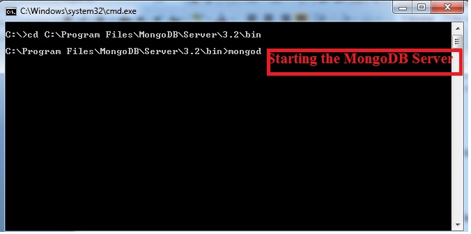 After the installation, go to the command prompt and go to the path “C:\Program Files\MongoDB\Server\3.2\bin”,
