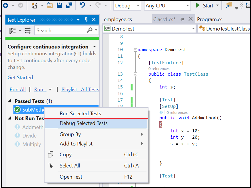 Now our next job is to add the Demo Project dll in DemoProjectTest References.