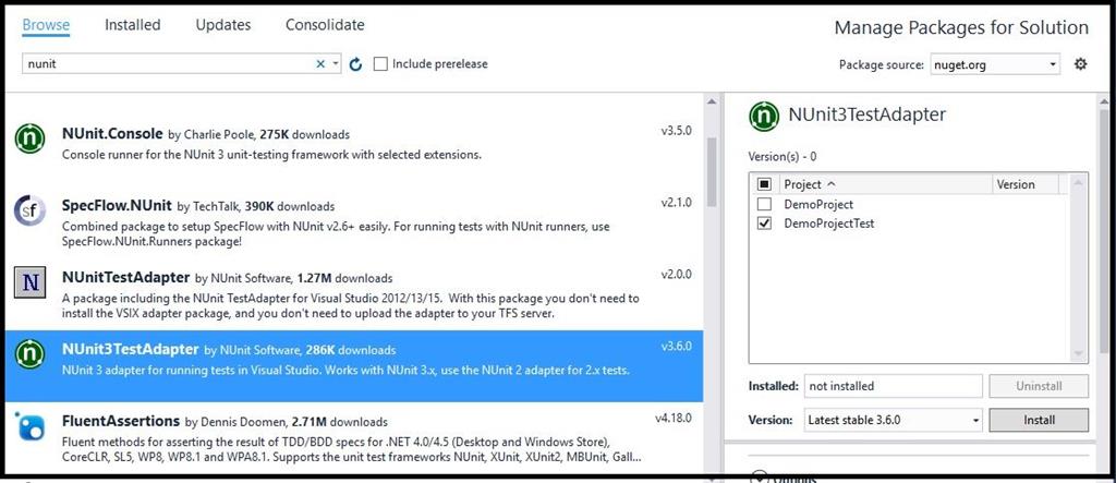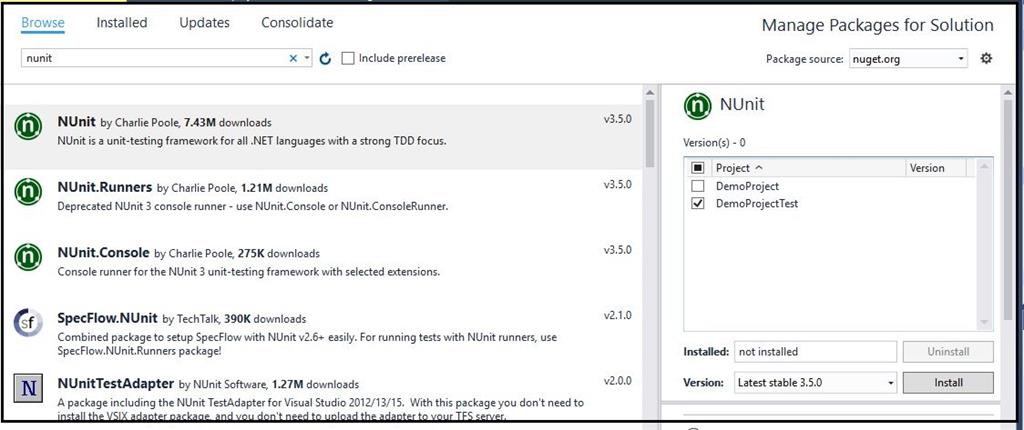 Now after installing the Nunit we need one more dll that needs to be installed in the project.