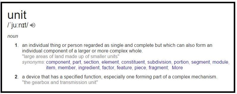 In this IT world a unit refers to simply a smallest piece of code which takes an input ,does certain operation, and gives an output.