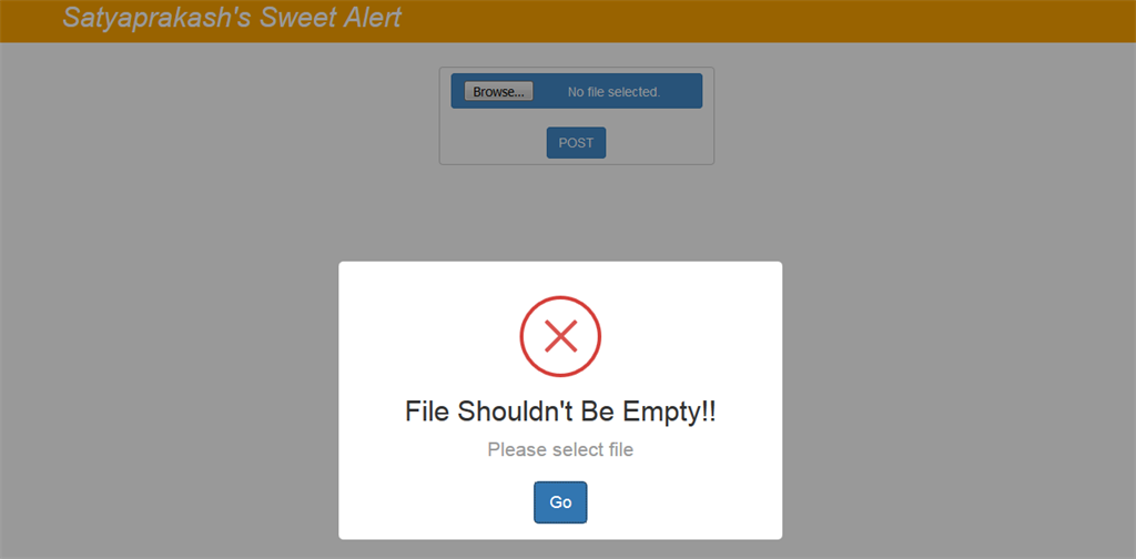 - sweetAlert("File Shouldn't Be Empty!!", "Please select file", "error");