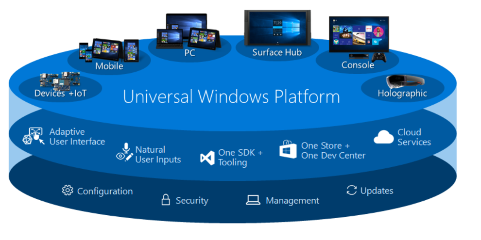 This is the detailed figure, which describes the Universal Windows Platform itself. Fortunately, the UWP has universal building blocks and built-in features for your help.