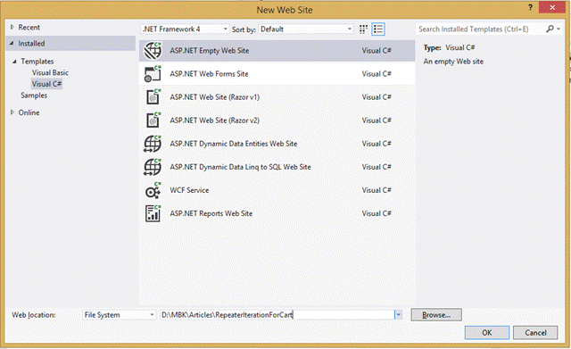Create a new ASP.NET web based project named RepeaterIterationForCart.
