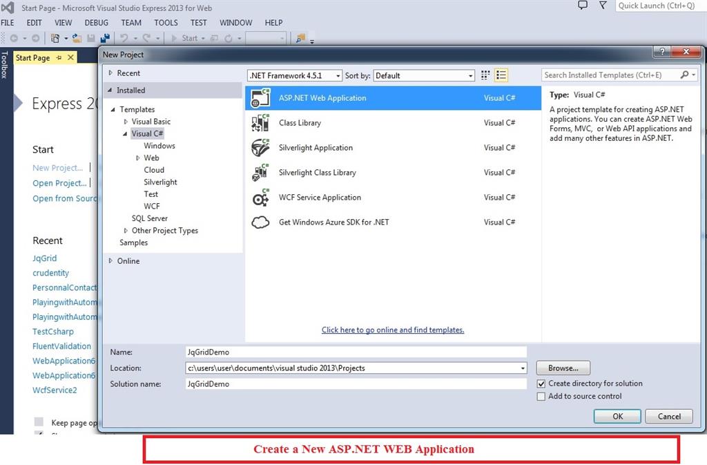 Now we will create a simple ASP.NET MVC Web Application. Go to Visual Studio and create a new project.