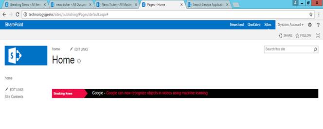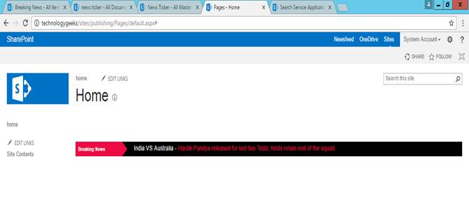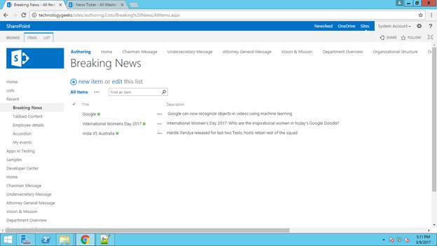 Now, we are going to insert some news into Breaking News list from Authoring site collection.