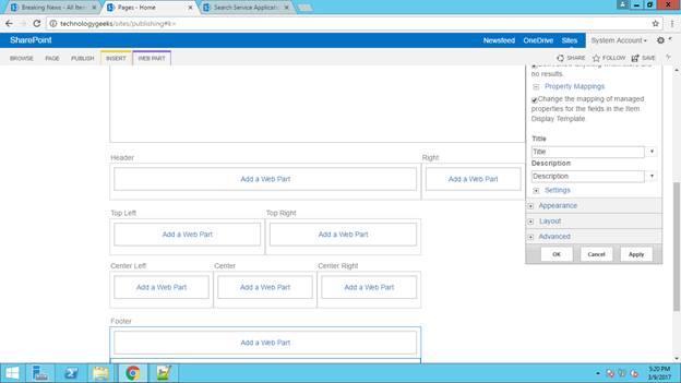 Click OK. Under property mapping section, map the managed properties of the title and description.