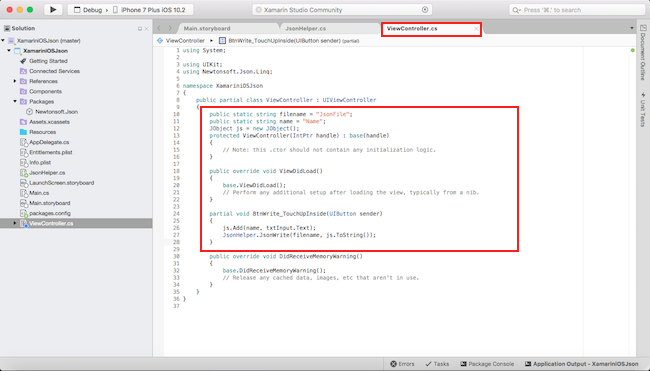 The steps given below are required to be followed in order to write JSON in Xamarin iOS, using Xamarin Studio.