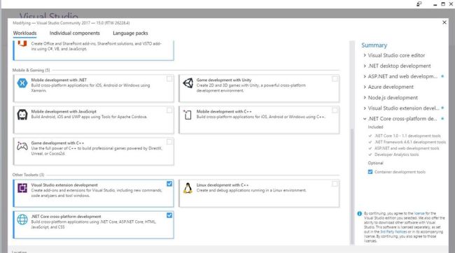 If you are using Visual Studio 2017 version, then it is very much easy to install the .NET Core since this feature is already included in the Visual Studio 2017 installation package. So, just open the Visual Studio Installer and select the