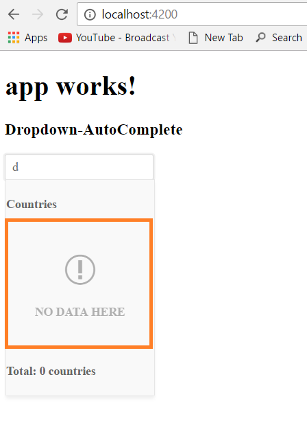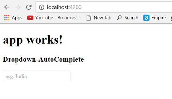 Let’s create a new component. In this article, we are going to see Kendo autocomplete for Angular 2. To use the autocomplete control, first we need to install the Kendo dropdowns module, give the command given below to install the Kendo dropdowns