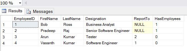 GetEmployee Action is used to get the employee details whose report to property is equal to null. GetEmployee Action with the paramter EmployeeID is used to fetch the employee detail, which is based on their report to value.