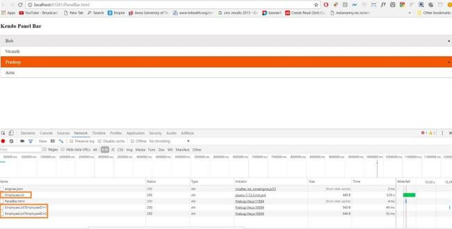 Creating HTML page and implementing Kendo panel bar with remote data binding