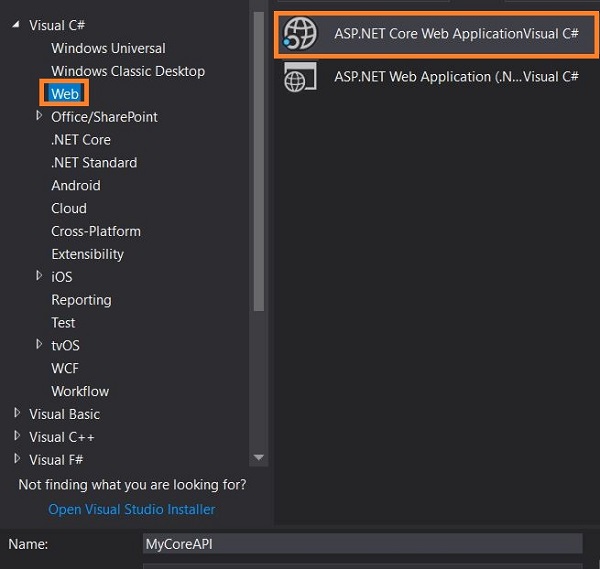 Create a new ASP.NET CORE API project, as shown in below figures.