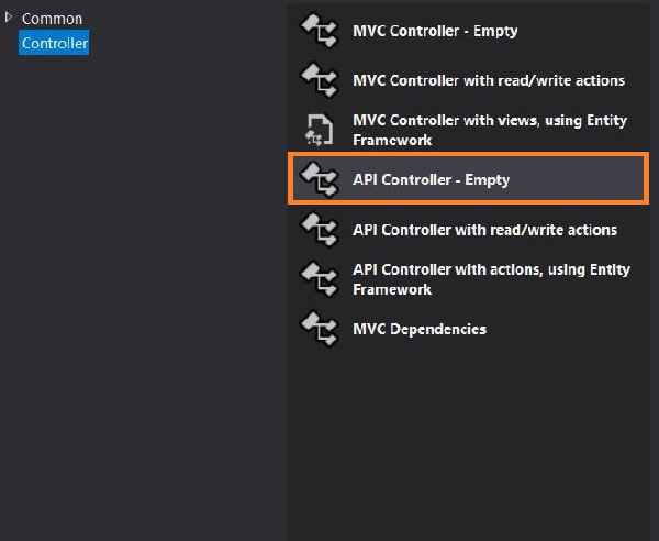 Once the project gets loaded, right click on Controller folder-> Add -> Controller to create a new empty API controller. In my case, I named it as AutomobilesController.