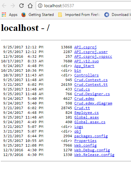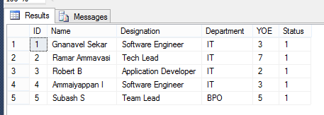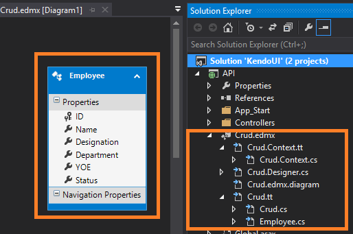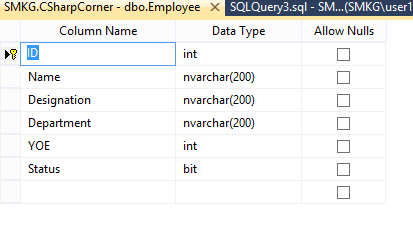 Here, I already discussed how to configure and implement database first approach. In the meantime choose our created table with entity framework, once we did our configuration with SQL table "Employee" from CRUD database and with our application you will get the below screen as succeeding configuration.