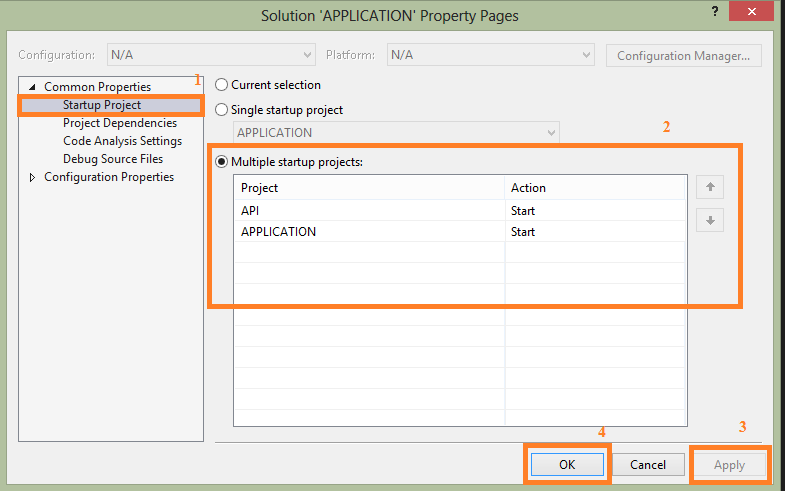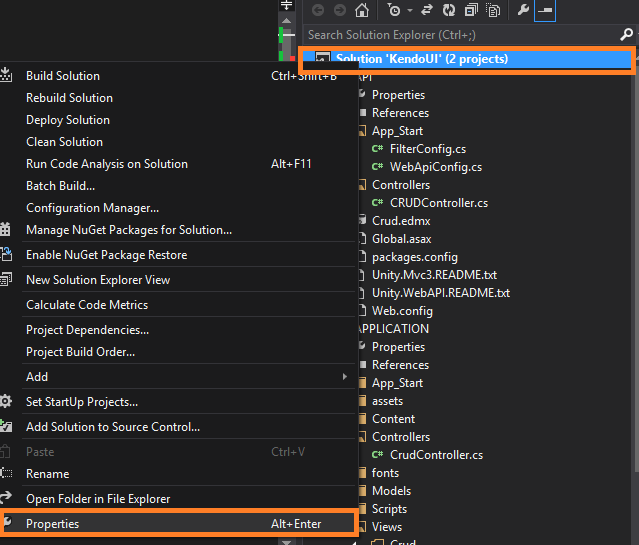 In this solution we have two ASP.Net MVC and ASP.NET WEB API projects, so we need to set which project needs to execute first but here we need to execute both applications because then only we will get the data from a database through Web API. Now we will configure both projects as startup project. For that right click on solution and select the project to set.
