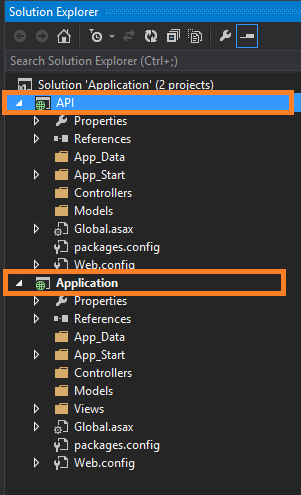 In the below image, you can see that both the projects have been created with the basic architecture of WebAPI and MVC.