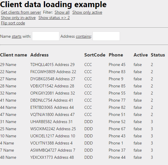 Server side, I am going to add a “SortCode” field to our client model, and throw in some spurious data to fill the space that we can sort on.