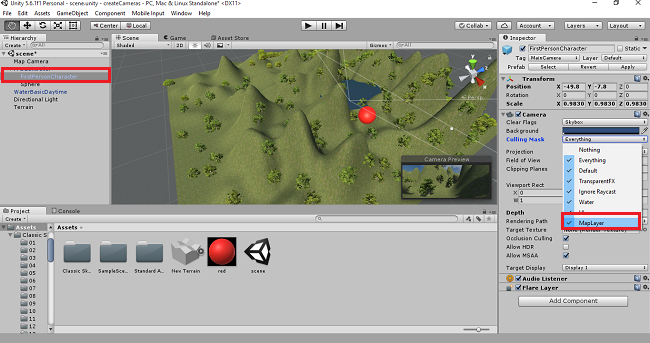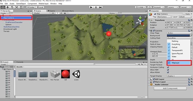 First, you have to open the Unity project. Create terrain, trees and water. Add the FPS control and create PIP Map Effect in Unity.