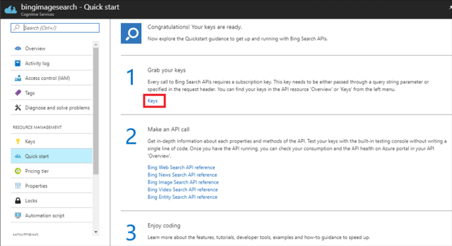 This article provides the creation and the demonstration of the Bing Image API on the Azure Portal using the Bing Search API in the Microsoft Azure. The Bing Image Search API provides an experience similar to Google.com/Images by allowing you to send a query to Bing and the result will produce the relevant images for the query.
