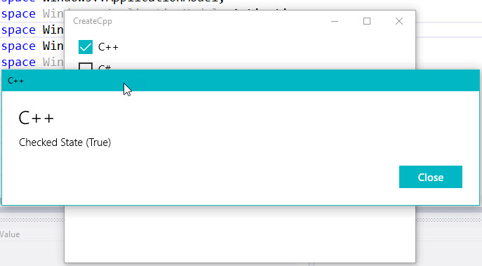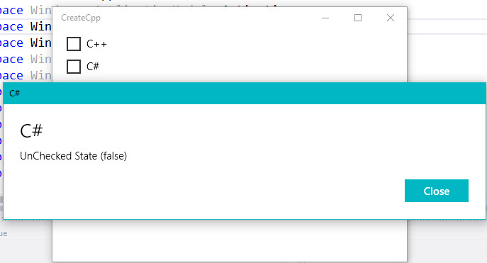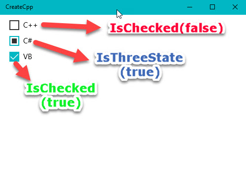 - auto chkBox1 = CreateCheckBox(L"C++",false,false);