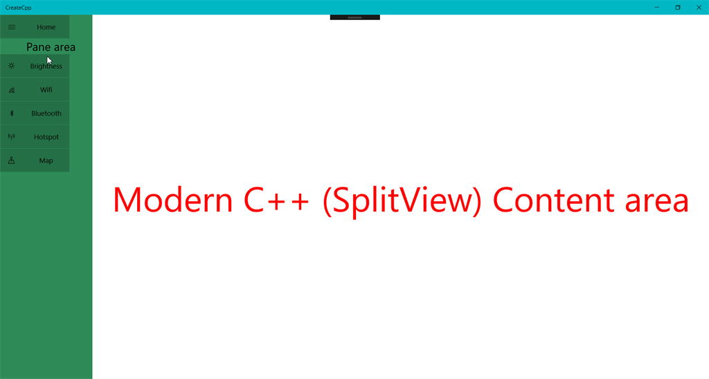 - txtStatus = CreateTextBlock(L"Modern C++ (SplitView) Content area");