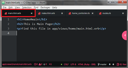 - After completing the application creation we need two HTML templates files in this article that files named as main.html.erb and index.html.erb.