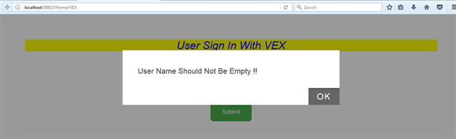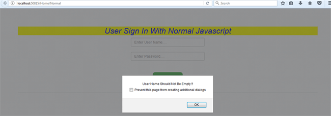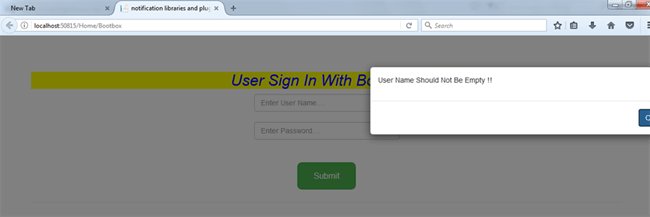 - bootbox.alert("User Name Should Not Be Empty !!");